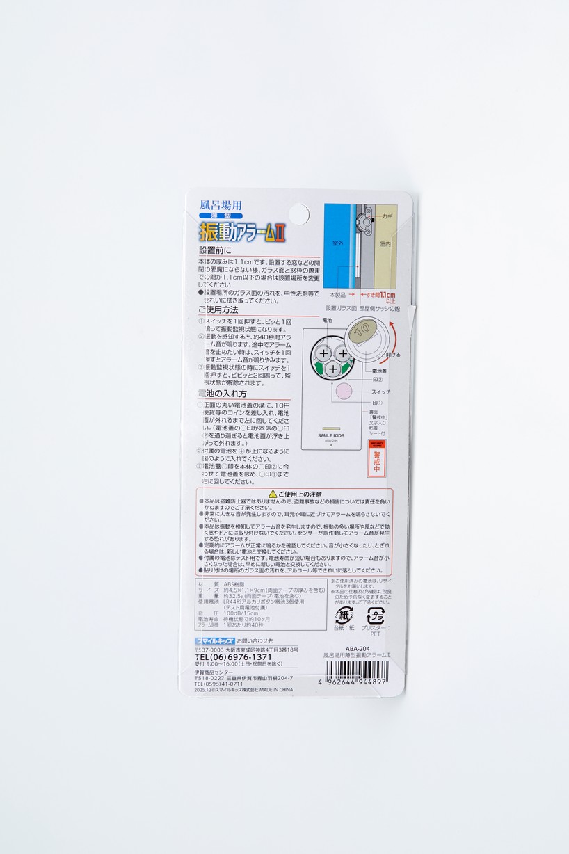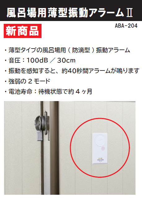 薄型タイプの風呂場用(防滴型)振動アラーム。