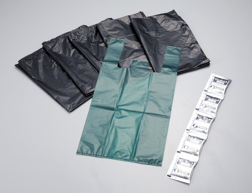 凝固剤・汚物袋が各5個・処理袋1枚