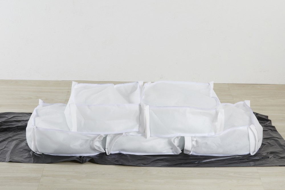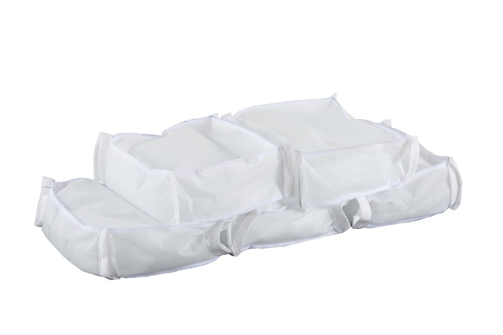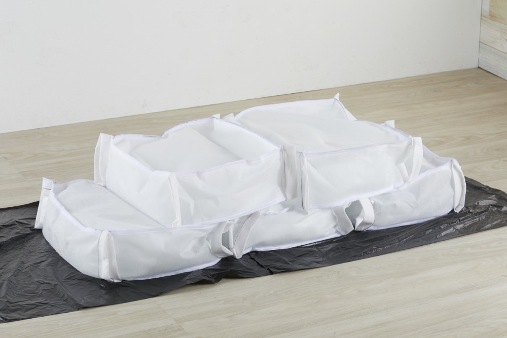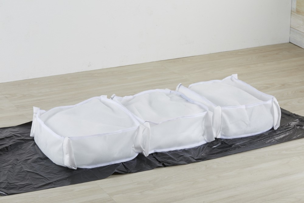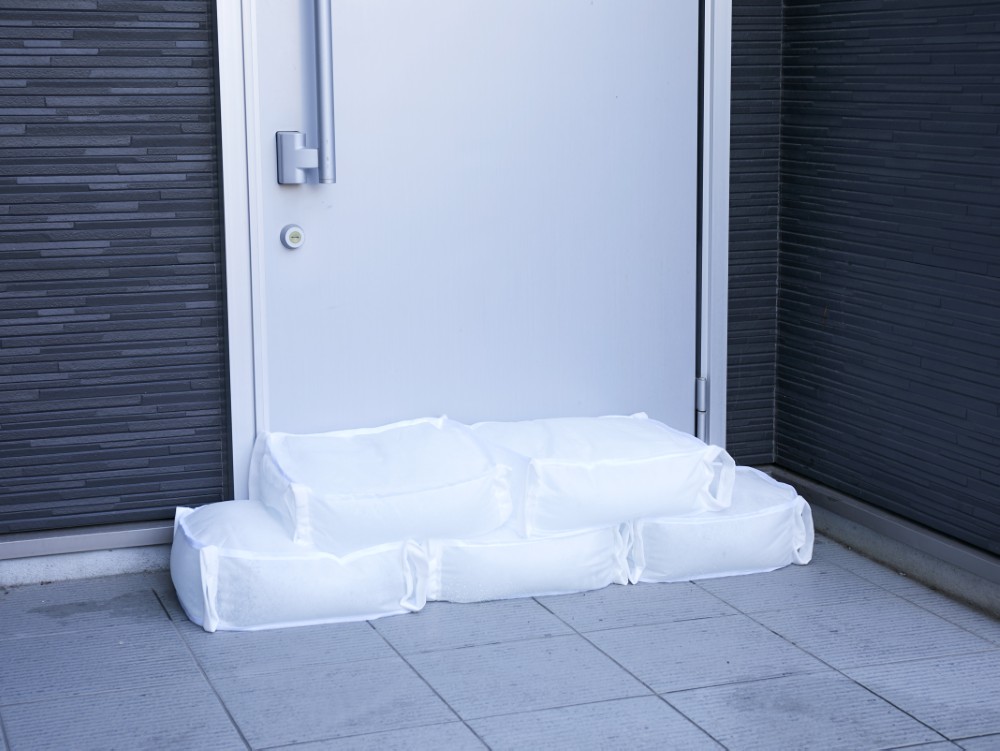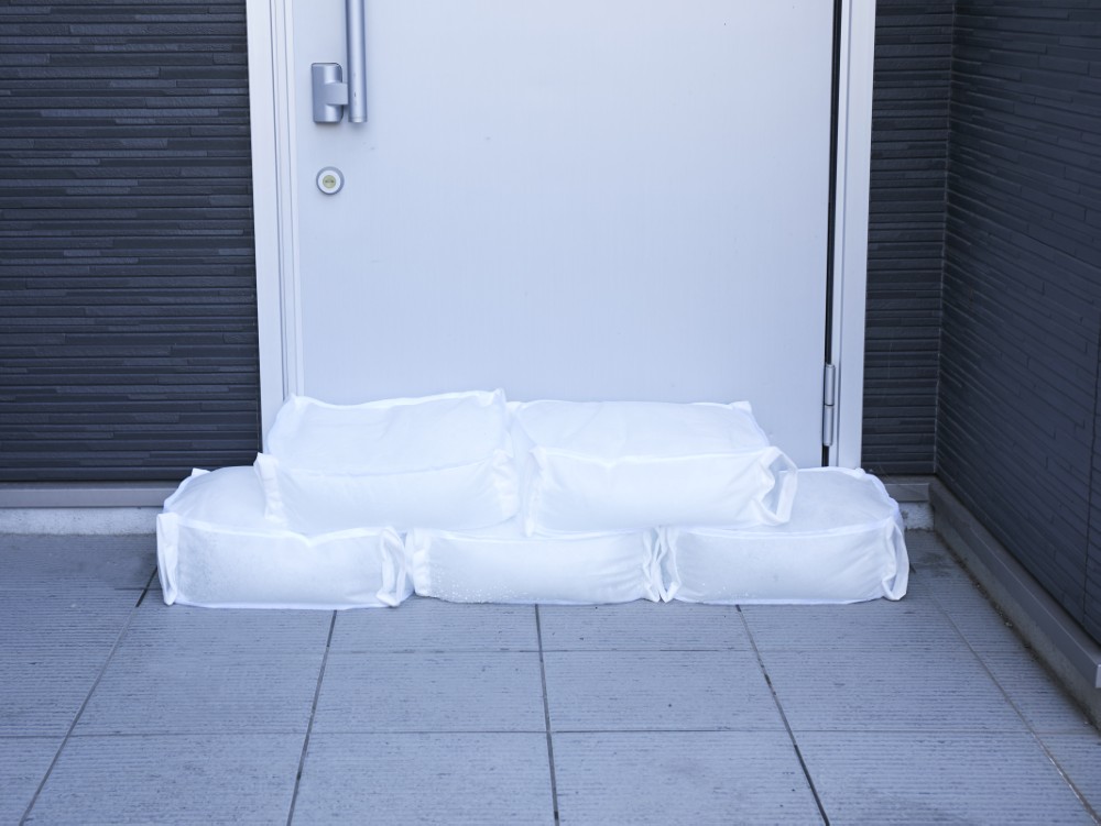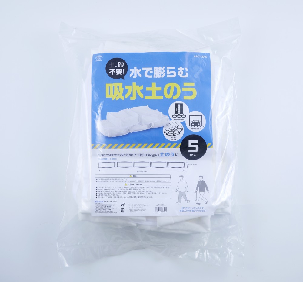 台風や大雨の際に浸水が心配な箇所に設置できる、吸水タイプの土のうです。土のうと違い、土を入れる手間が水に浸けるだけになるので誰でも扱いやすく、持ち手が4ヵ所についているので複数人で持ち運びがしやすくなっています。5枚セットすれば幅1.75m、高さ10cmまでの浸水を防げます。
