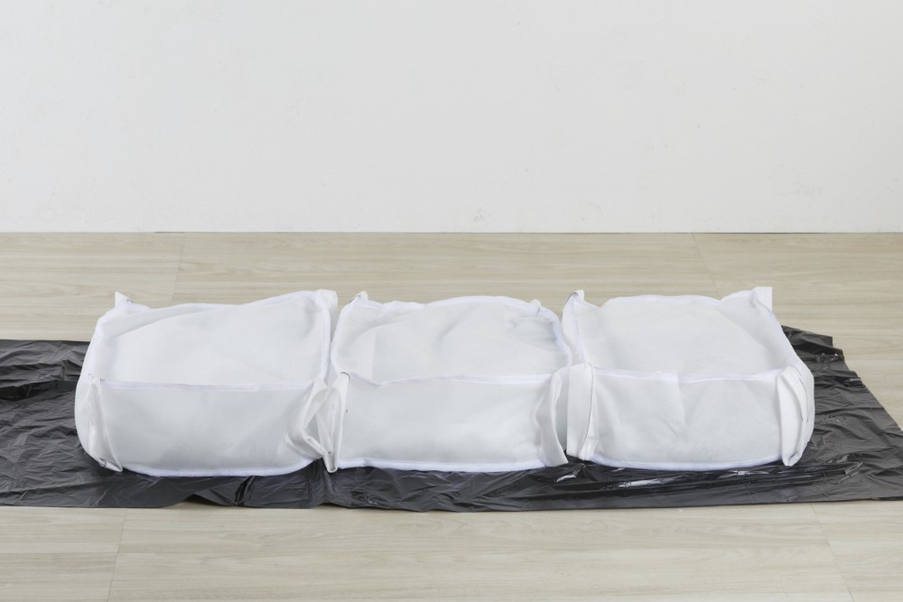 水に浸けて5分で吸水完了して約16kgの土のうとして使えます 持ち手が4ヵ所に付いているので複数人での持ち運びも可能で使いやすい