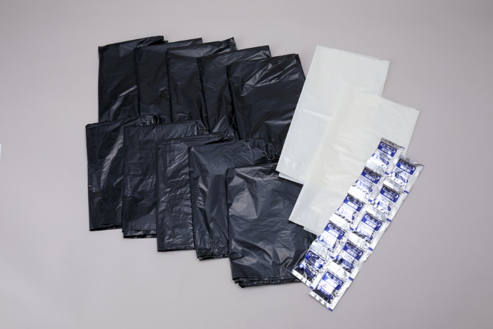 凝固剤・汚物袋が各10個・防臭処理袋2枚