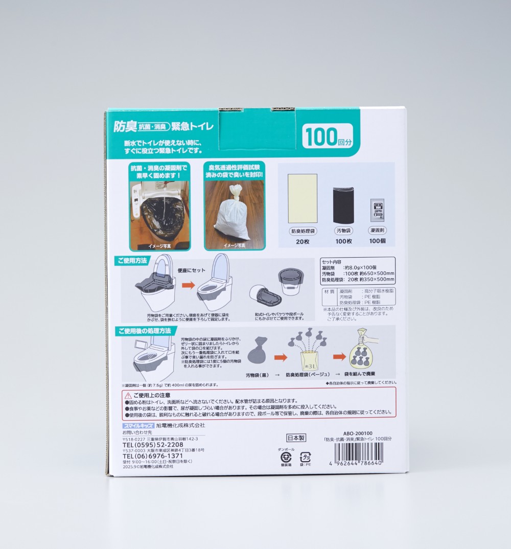 2重の抗菌・消臭機能で、尿などの排泄物をすばやく固めて密閉し、災害時に悪化しやすい衛生環境や悪臭対策のお役に立ちます。