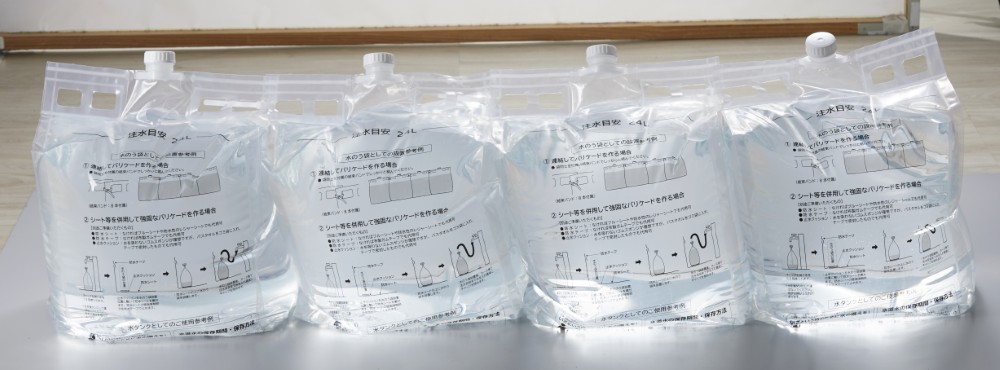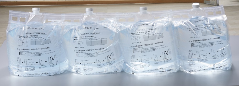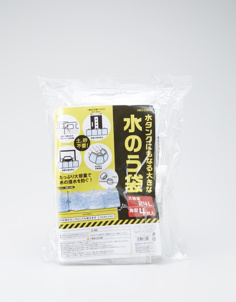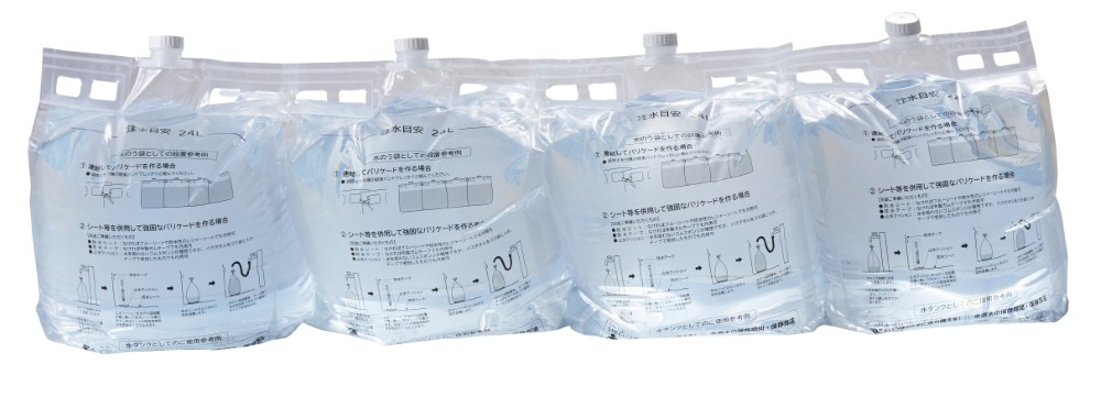 土、砂不要の水のう袋です。家屋の浸水防止、流水防止の水路誘導、車庫の浸水防止などに使え、使用後は水を捨てる だけで後処理も簡単です。緊急時に飲料水用の水タンクとしても使える食品衛生適合品です。袋同士を連結して使用できます。