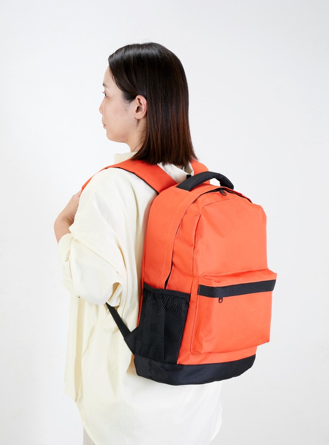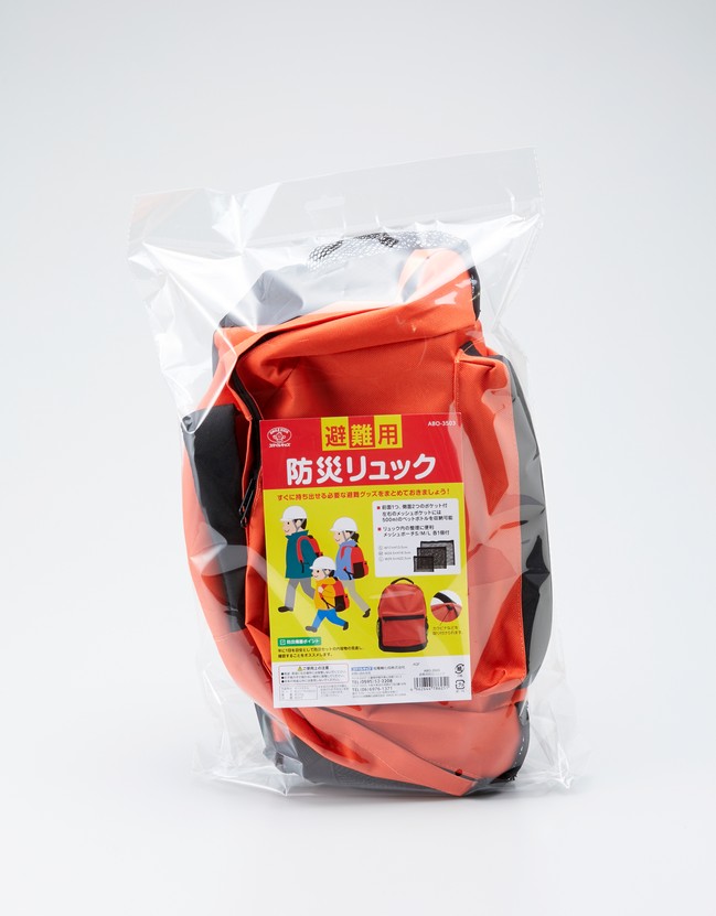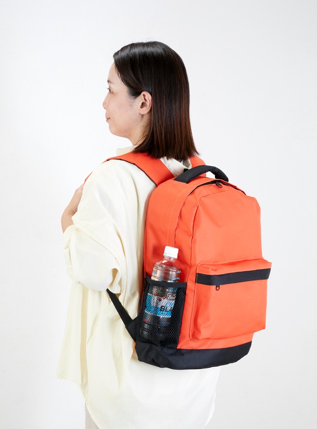 避難時に目立ちどこにあるのか分かりやすいレッドカラーの防災リュックです。