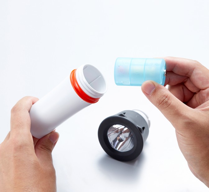 あらゆる単3乾電池に対応で、内部逆接機構付き。